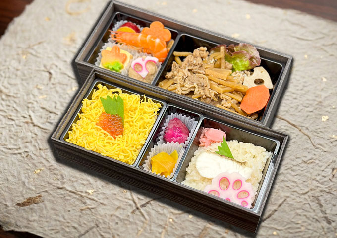 鯛おこわといくら丼牛しぐれ弁当